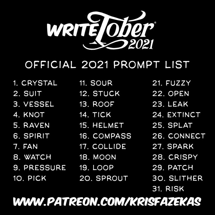 As we are in Day 5 of Writetober 2021, I wanted to give everyone a refresher, or for the first timers, an overview! You will see in the image below, a word for each day of the month of October. For each of those days, I will be writing a “flash fiction” pertaining to the word. These stories will be rough draft/un edited. That’s really as simple as it is!